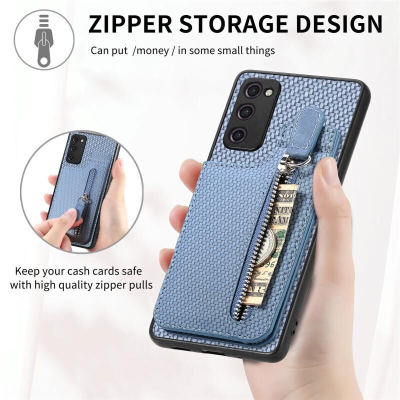 Για Samsung Galaxy S20 Ultra Carbon Fiber Κάθετη Flip φερμουάρ Wallet υπόθεση τηλεφώνου (καφέ)