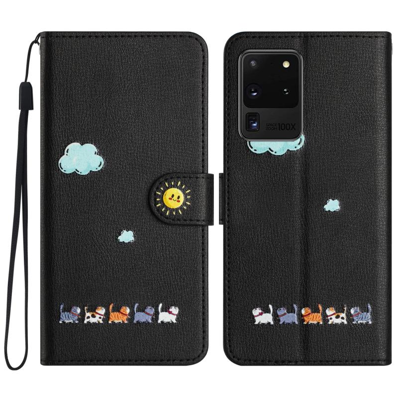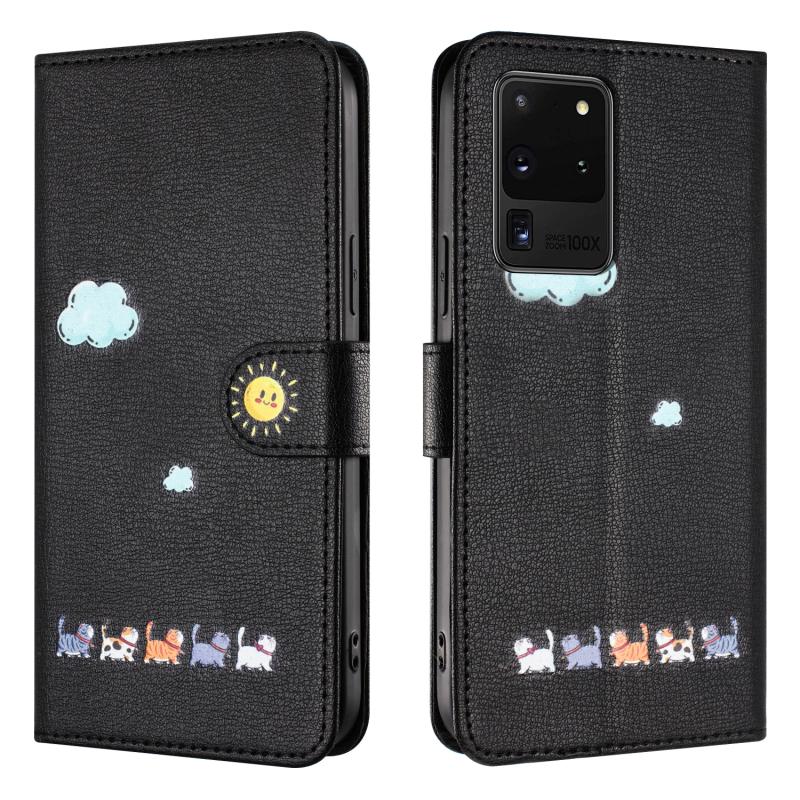 Θήκη τηλεφώνου Samsung Galaxy S20 Ultra από δέρμα με σχέδια χαριτωμένων γατών (Κόκκινο)