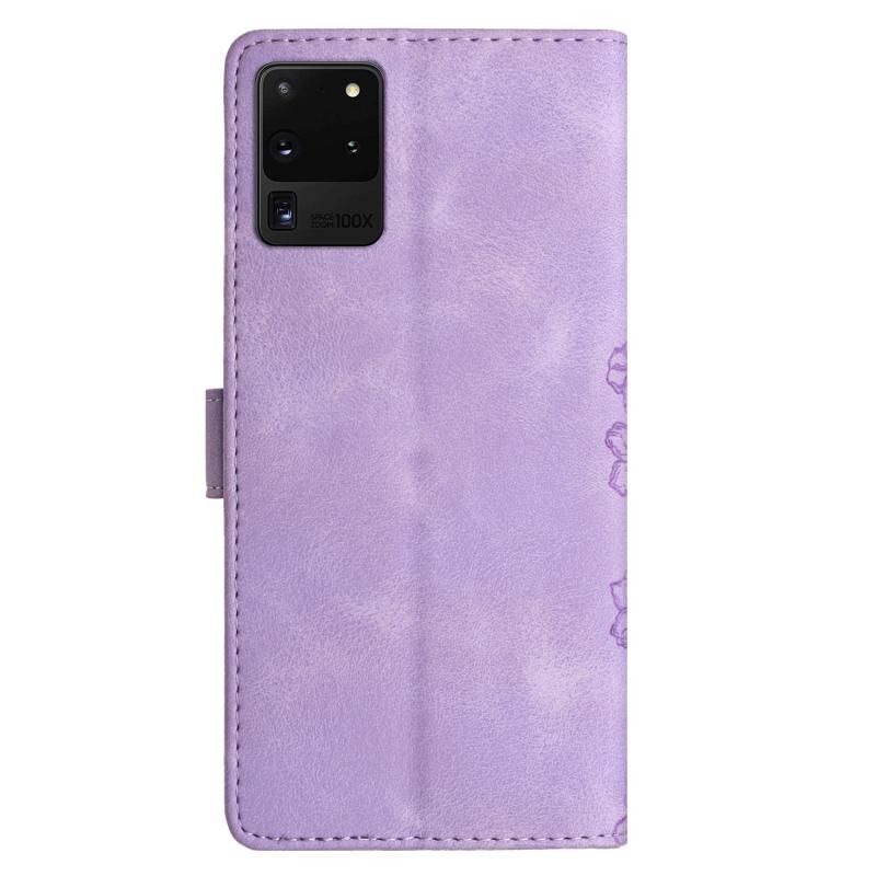 Θήκη τηλεφώνου Samsung Galaxy S20 Ultra Cherry Blossom Butterfly με ανάγλυφο PU υλικό αίσθησης δέρματος (Κόκκινο)