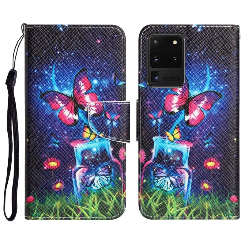 Θήκη τηλεφώνου Samsung Galaxy S20 Ultra από δέρμα με έγχρωμο σχέδιο (Μπουκάλι Πεταλούδα)
