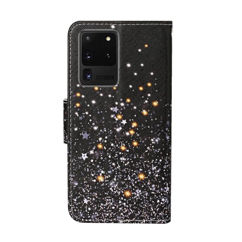 Θήκη δέρματος οριζόντιας αναδίπλωσης με σχέδιο έγχρωμης ζωγραφικής για Samsung Galaxy S20 Ultra με βάση στήριξης & υποδοχές καρτών & πορτοφόλι & κορδόνι (Μαύρη Γάτα)