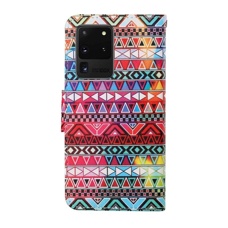 Θήκη δέρματος οριζόντιας αναδίπλωσης με σχέδιο έγχρωμης ζωγραφικής για Samsung Galaxy S20 Ultra με βάση στήριξης & υποδοχές καρτών & πορτοφόλι & κορδόνι (Εθνικό φυλετικό στυλ)
