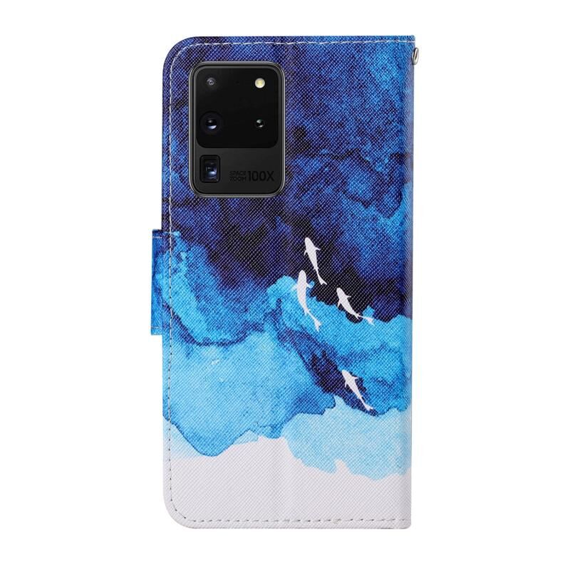 Θήκη δέρματος οριζόντιας αναδίπλωσης με σχέδιο πολύχρωμης ζωγραφικής για Samsung Galaxy S20 Ultra με βάση στήριξης & υποδοχές καρτών & πορτοφόλι & κορδόνι (Κόκκινο)