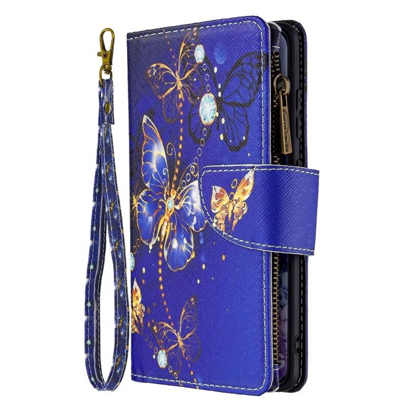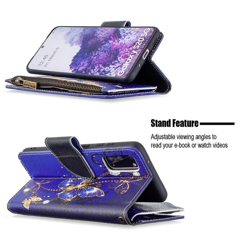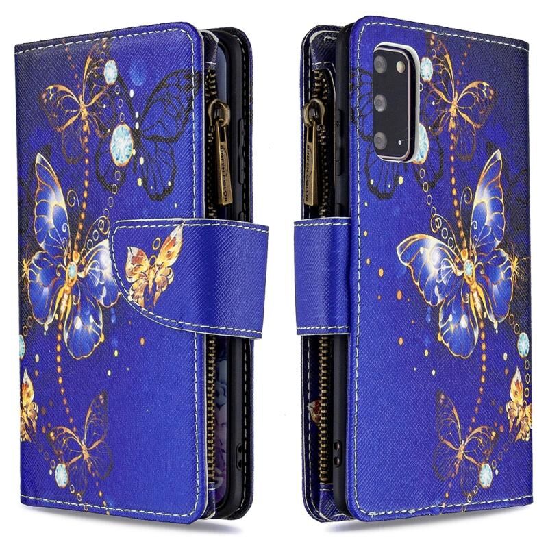 Θήκη δέρματος οριζόντιας αναδίπλωσης με φερμουάρ για Samsung Galaxy S20 Ultra με έγχρωμο σχέδιο, θήκη και υποδοχές καρτών & πορτοφόλι (Μωβ Πεταλούδα)