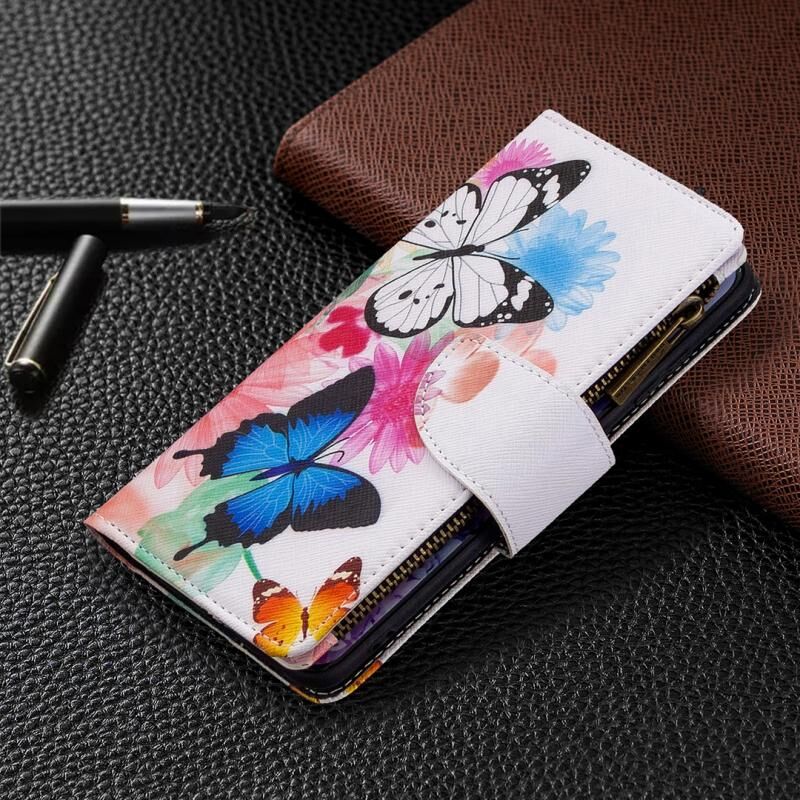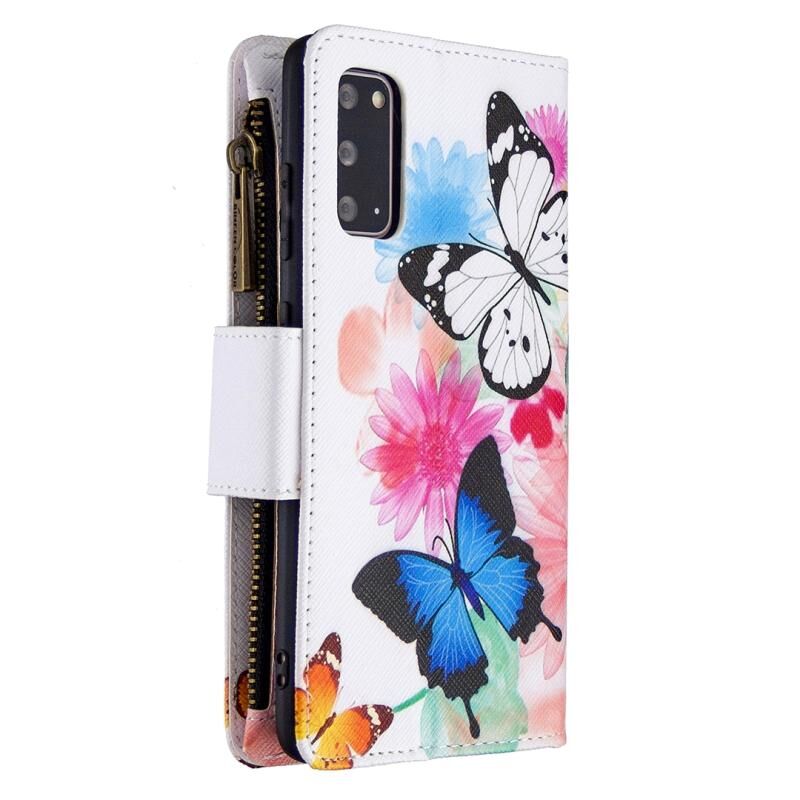 Θήκη Samsung Galaxy S20 Ultra Δερμάτινη Οριζόντια με Φερμουάρ, Σχέδιο με Χρώματα και Ζωγραφική, με Θήκη & Θήκες για Κάρτες & Πορτοφόλι (Δύο Πεταλούδες)