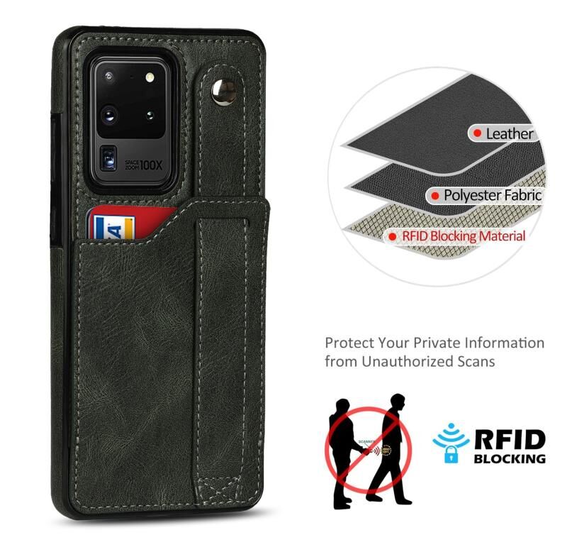 Για το Samsung Galaxy S20 Ultra Crazy Horse Υφή Shockproof TPU + PU δέρμα υπόθεση με υποδοχή για κάρτες & στήριγμα λουράκι καρπού (Emerald Green)
