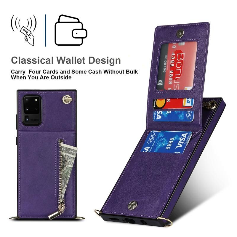 Για Samsung Galaxy S20 Ultra Cross-body φερμουάρ τετράγωνο TPU + PU πίσω κάλυμμα υπόθεση με θήκη & υποδοχές για κάρτες & πορτοφόλι & λουράκι (μωβ)