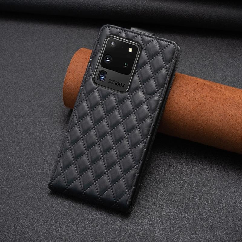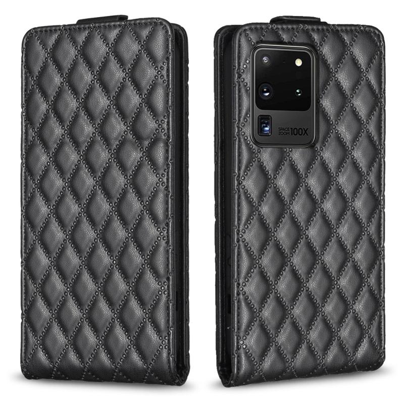 For Samsung Galaxy S20 Ultra Diamond Lattice Vertical Flip Leather Phone Case(Black)