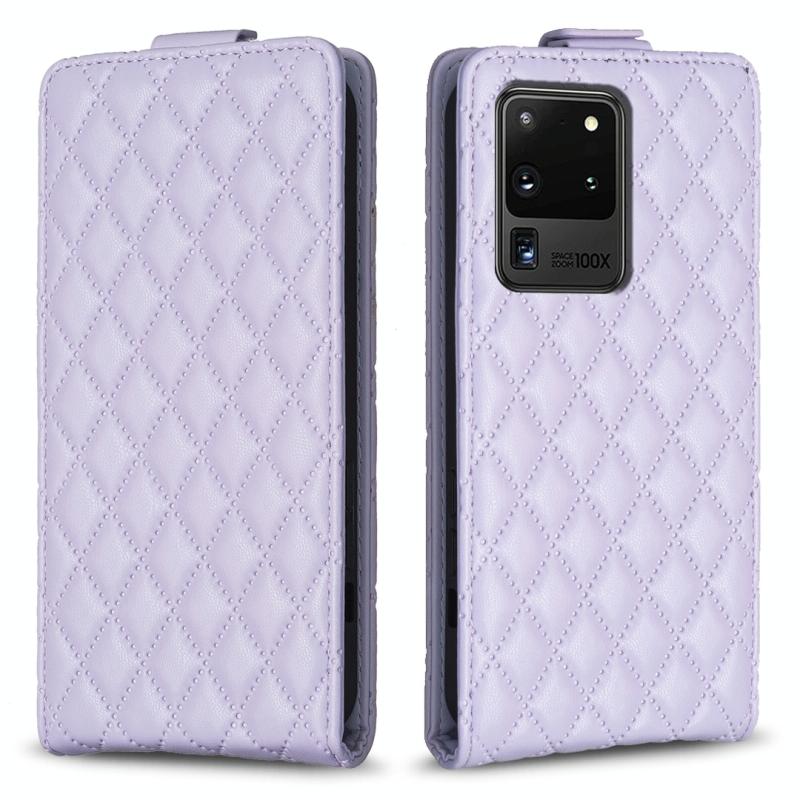 For Samsung Galaxy S20 Ultra Diamond Lattice Vertical Flip Leather Phone Case(Purple)