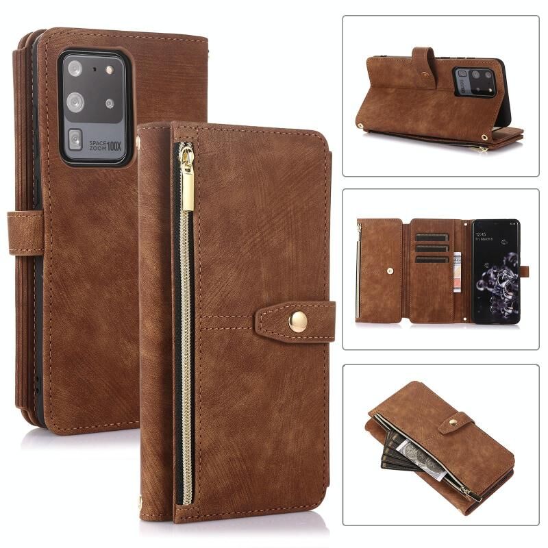 Για Samsung Galaxy S20 Ultra Dream 9-κάρτα πορτοφόλι φερμουάρ τσάντα δερμάτινη θήκη τηλεφώνου (Καφέ)