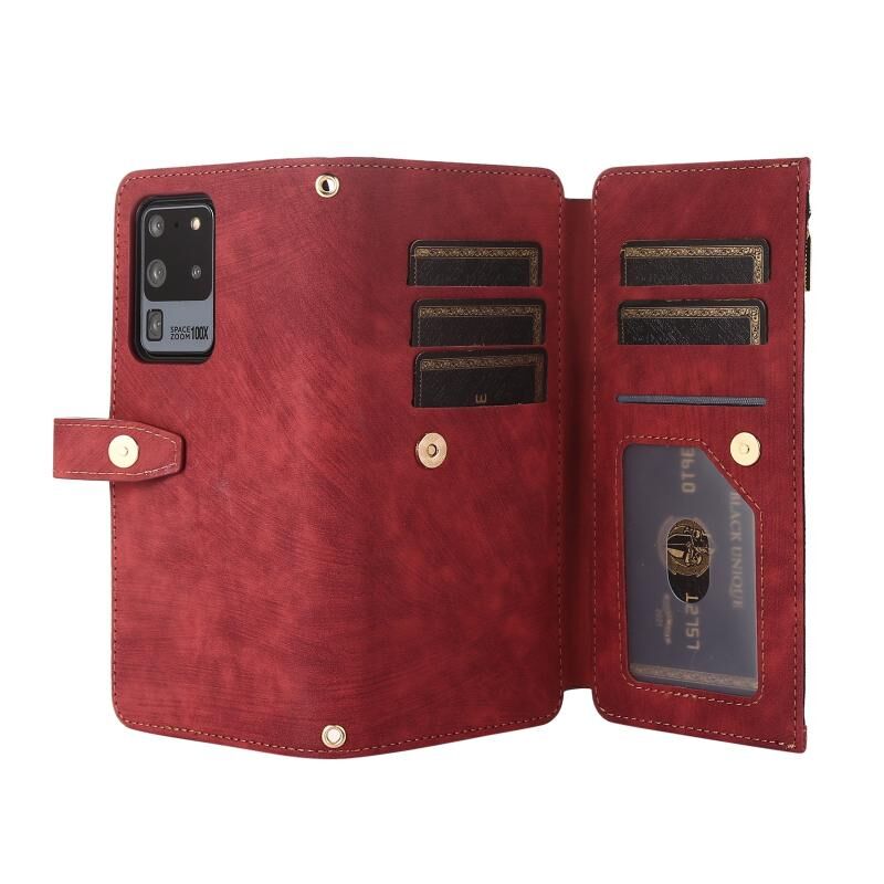 Για Samsung Galaxy S20 Ultra Dream 9-κάρτα πορτοφόλι φερμουάρ τσάντα δερμάτινη θήκη τηλεφώνου (Κόκκινο)