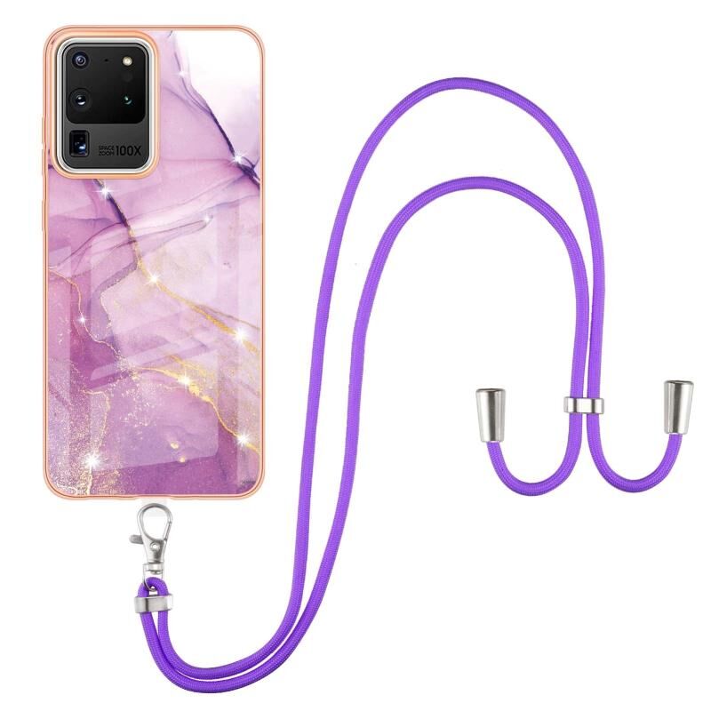 Θήκη για Samsung Galaxy S20 Ultra με Γαλβανισμό, Μοτίβο Μαρμάρου IMD, Αντικραδασμική από TPU με Λουρί Λαιμού (Μωβ 002)