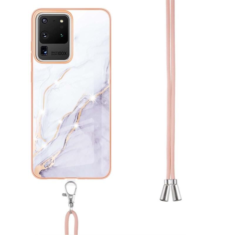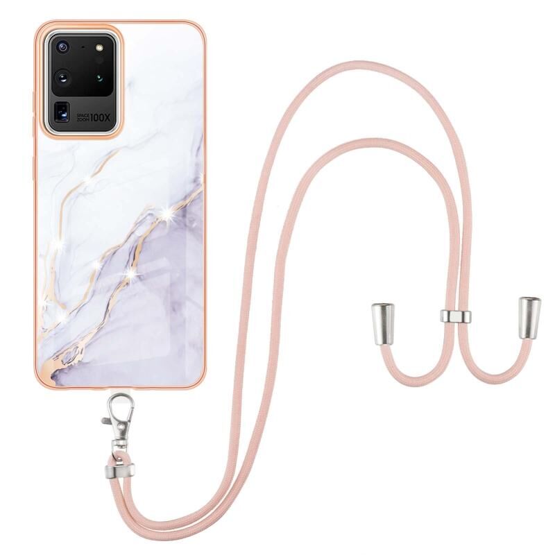 Θήκη για Samsung Galaxy S20 Ultra με Γαλβανισμό, Μοτίβο Μαρμάρου IMD, Αντικραδασμική από TPU με Λουρί Λαιμού (Λευκό 006)