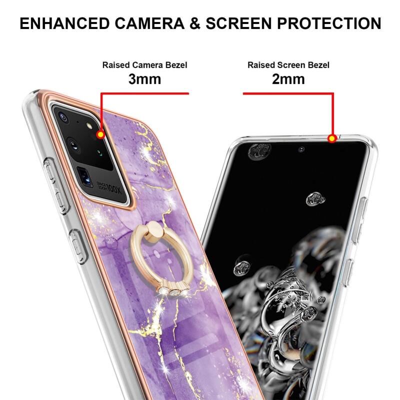 Θήκη για Samsung Galaxy S20 Ultra με Γαλβανισμό, Μοτίβο Μαρμάρου IMD, Αντικραδασμική από TPU με Δακτύλιο Στήριξης (Μωβ 002)