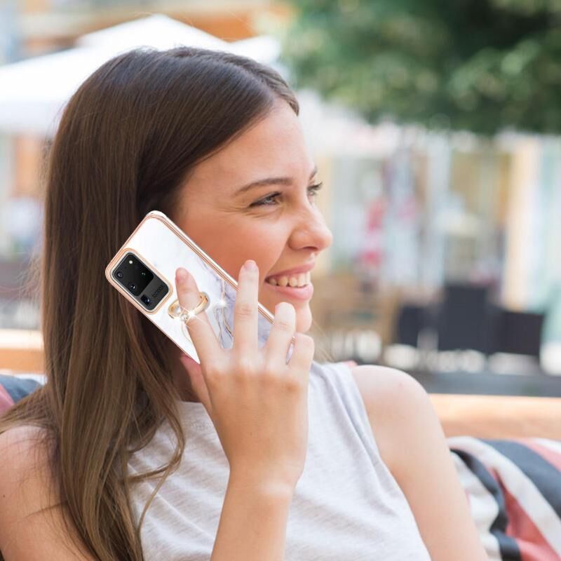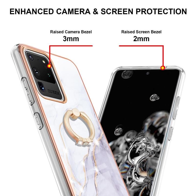Θήκη για Samsung Galaxy S20 Ultra με Γαλβανισμό, Μοτίβο Μαρμάρου IMD, Αντικραδασμική από TPU με Δακτύλιο Στήριξης (Μωβ 002)