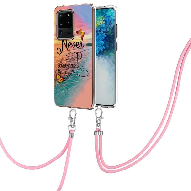For Samsung Galaxy S20 Ultra Electroplating Pattern IMD TPU Shockproof Case with Neck Lanyard(Dream Chasing Butterfly)
