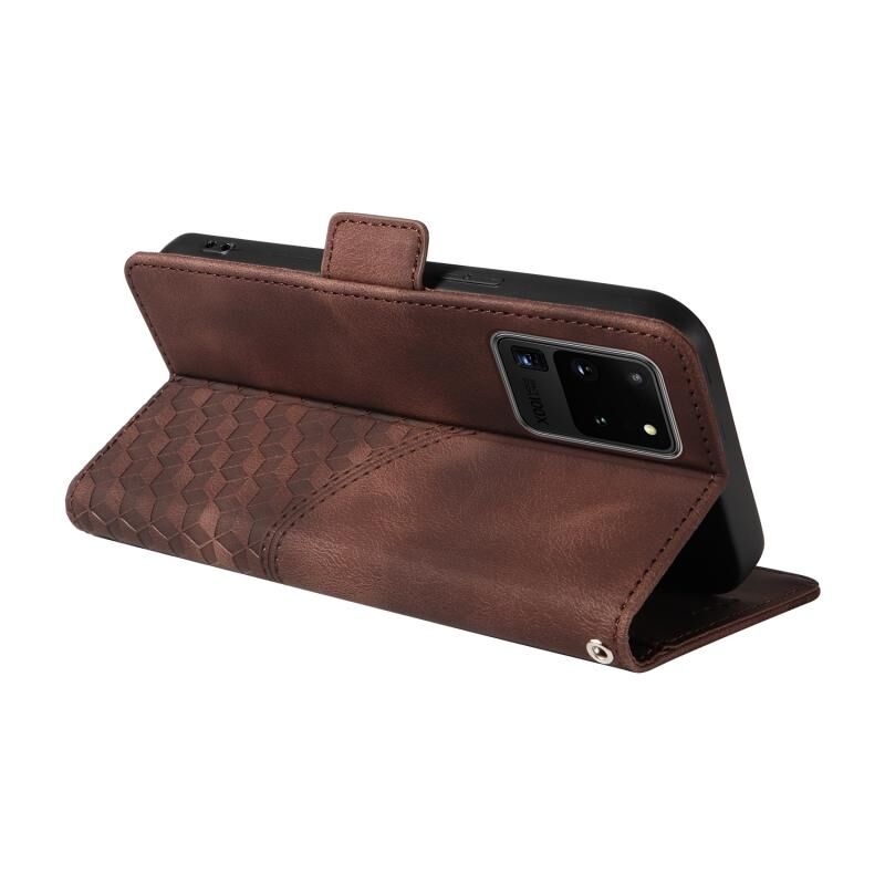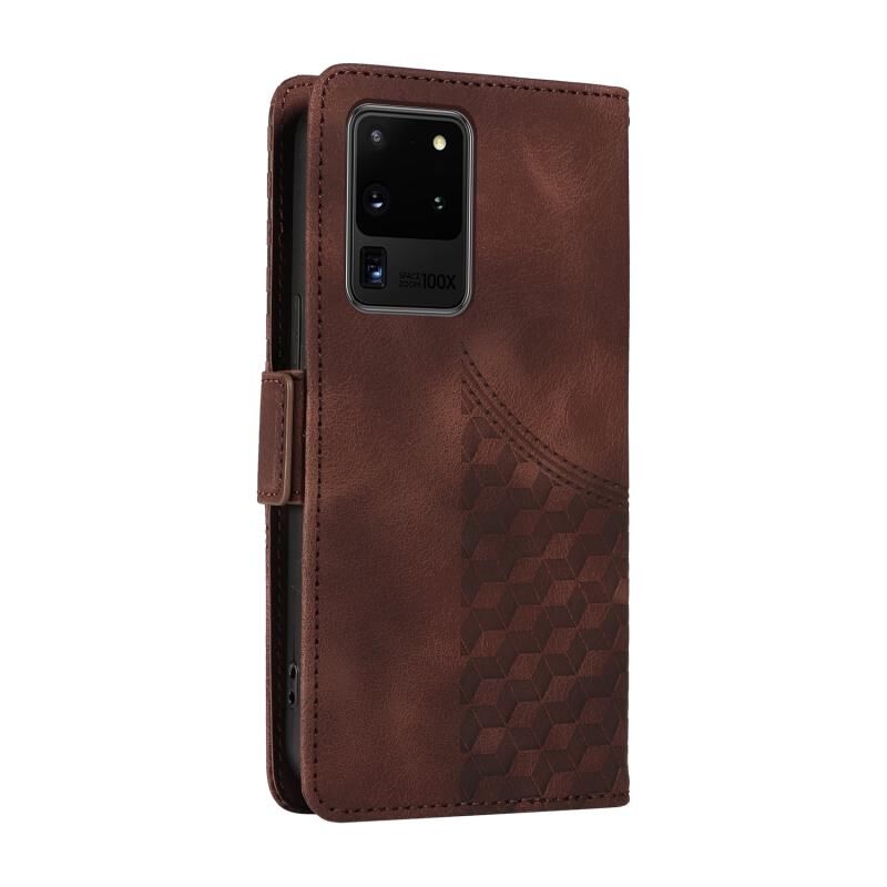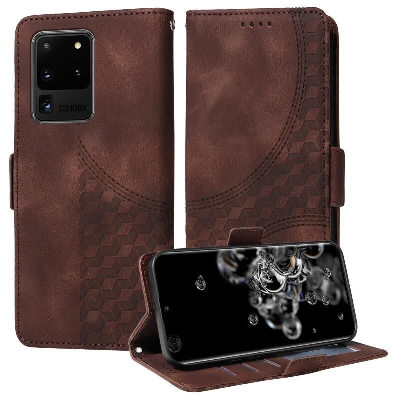 Για Samsung Galaxy S20 Ultra ανάγλυφο ρόμβος αστερόεσσα δερμάτινη θήκη τηλεφώνου (καφέ)