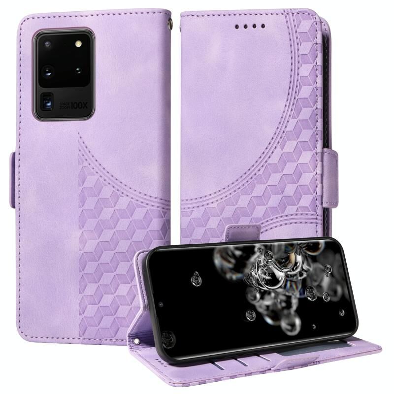 Για Samsung Galaxy S20 Ultra ανάγλυφο ρόμβος Starry δερμάτινη θήκη τηλεφώνου (μωβ)