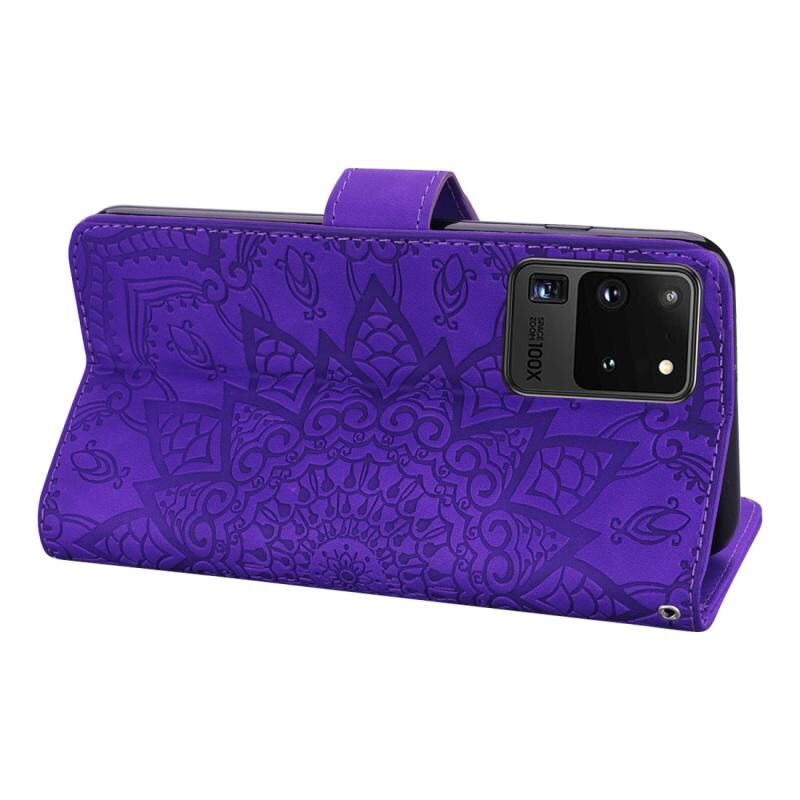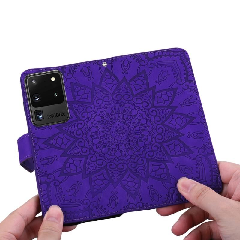 Θήκη Samsung Galaxy S20 Ultra με ανάγλυφο σχέδιο ηλίανθου, οριζόντια, από δερματίνη PU με βάση στήριξης, θήκες για κάρτες, πορτοφόλι & λουρί (Μωβ)