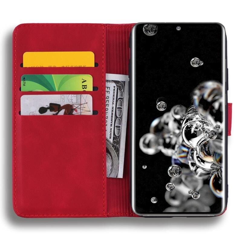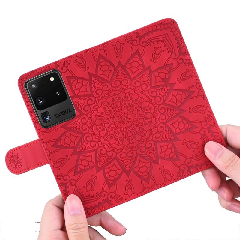 Θήκη Samsung Galaxy S20 Ultra με ανάγλυφο σχέδιο ηλίανθου, οριζόντια, από δερματίνη PU με βάση στήριξης, θήκες για κάρτες, πορτοφόλι & λουρί (Κόκκινο)