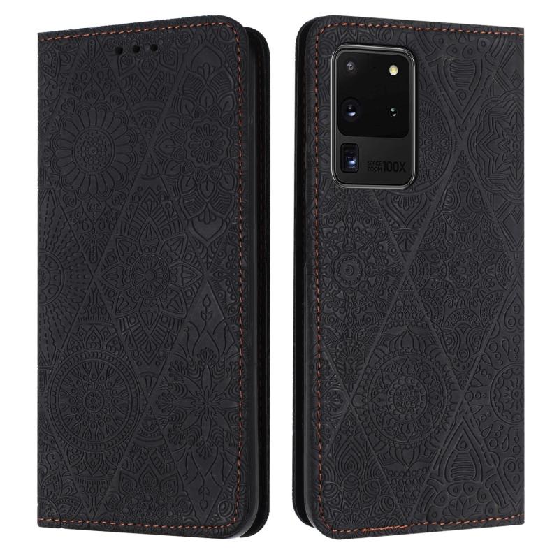 Θήκη τηλεφώνου Samsung Galaxy S20 Ultra από δέρμα με έμβοση εθνοτικού σχεδίου και απορρόφηση κραδασμών (Μαύρο)