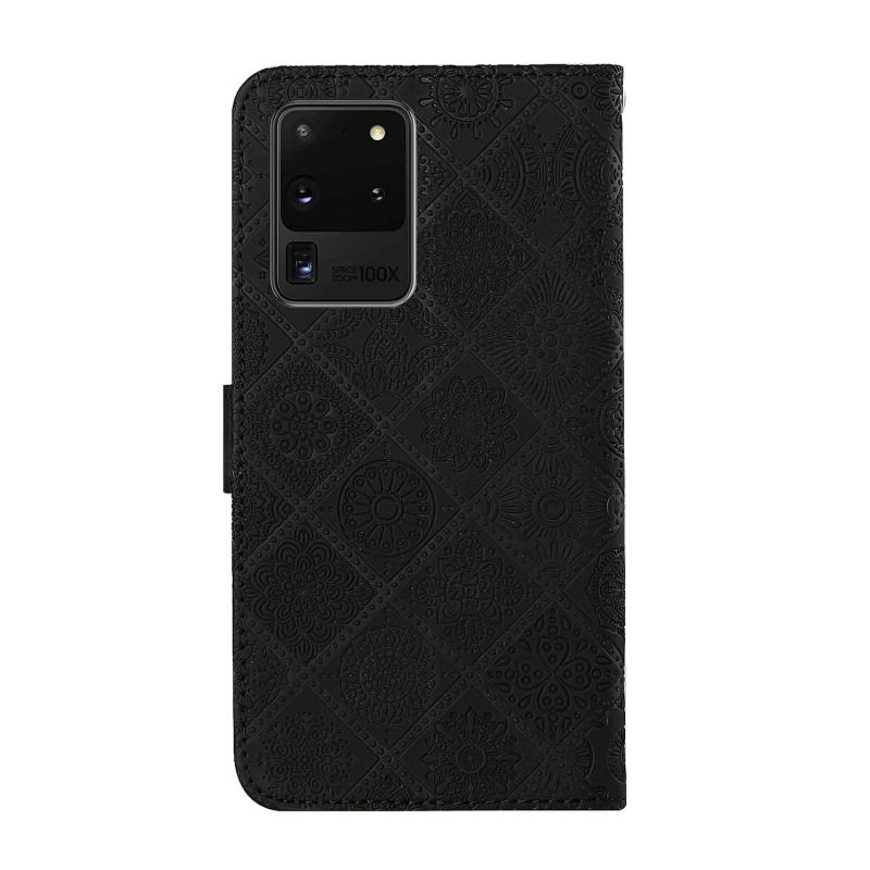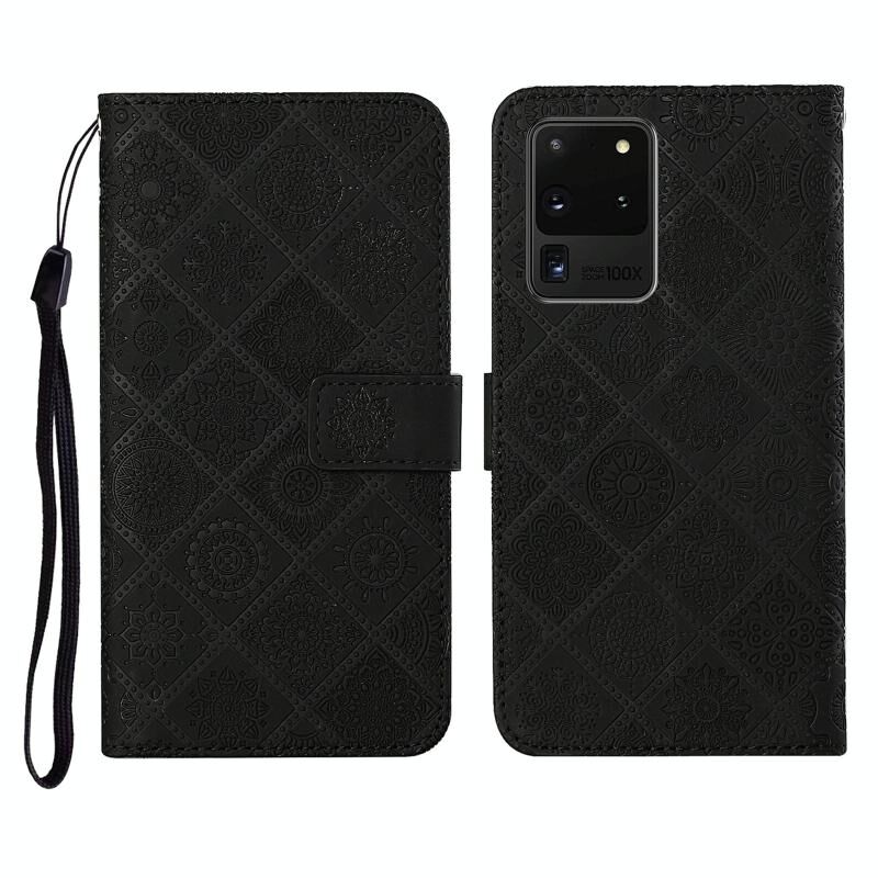 For Samsung Galaxy S20 Ultra Ethnic Style Embossed Pattern Horizontal Flip Leather Case with Holder & Card Slots & Wallet & Lanyard(Black)