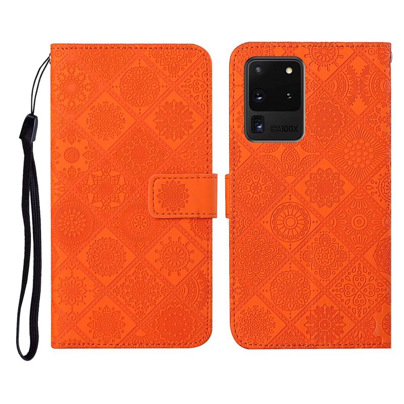For Samsung Galaxy S20 Ultra Ethnic Style Embossed Pattern Horizontal Flip Leather Case with Holder & Card Slots & Wallet & Lanyard(Orange)