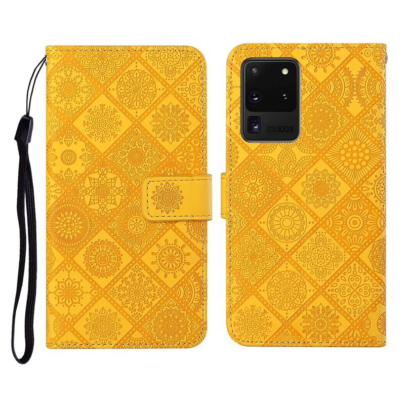 Θήκη Samsung Galaxy S20 Ultra Εθνικού Στυλ με ανάγλυφο σχέδιο, οριζόντια, από δέρμα με βάση για κάρτες, πορτοφόλι και λουρί (Λευκό)