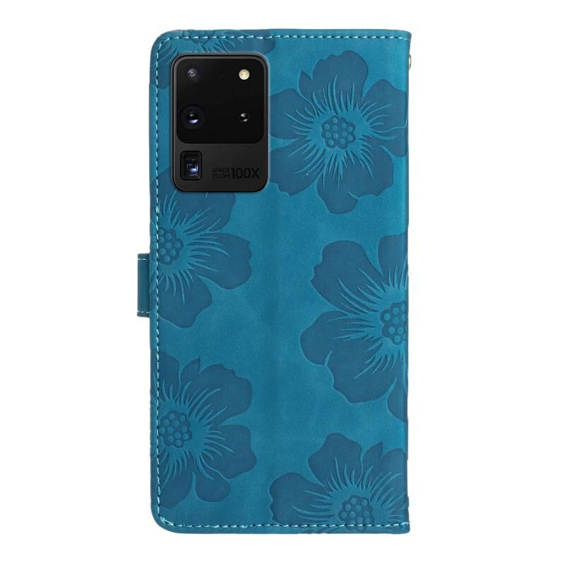 Για Samsung Galaxy S20 Ultra λουλούδι ανάγλυφο μοτίβο δερμάτινη θήκη τηλεφώνου (μπλε)