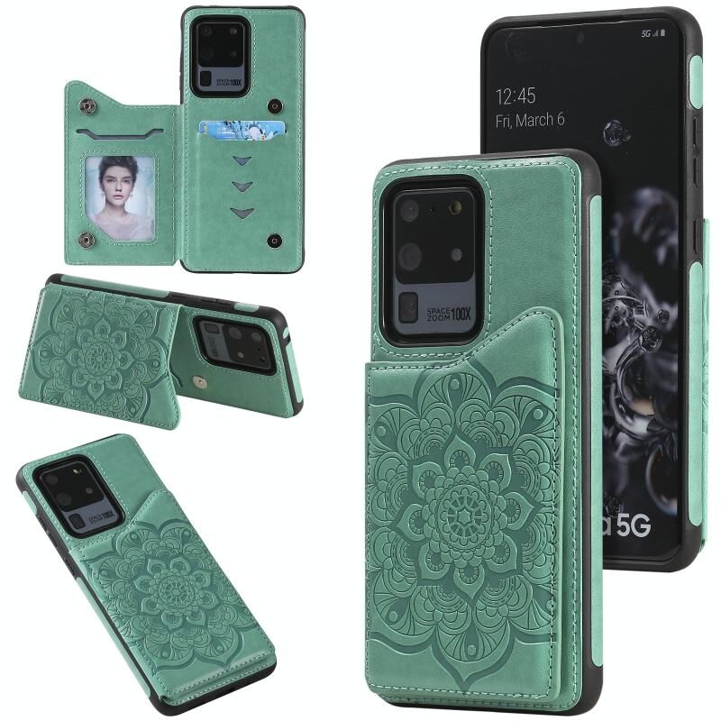 Για Samsung Galaxy S20 Ultra λουλούδι ανάγλυφο μοτίβο Shockproof προστατευτική θήκη με θήκη & υποδοχές για κάρτες & πλαίσιο φωτογραφιών (πράσινο)