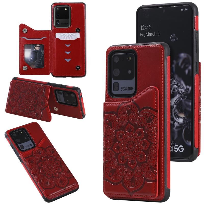 Για Samsung Galaxy S20 Ultra λουλούδι ανάγλυφο μοτίβο Shockproof προστατευτική θήκη με θήκη & υποδοχές για κάρτες & πλαίσιο φωτογραφιών (κόκκινο)