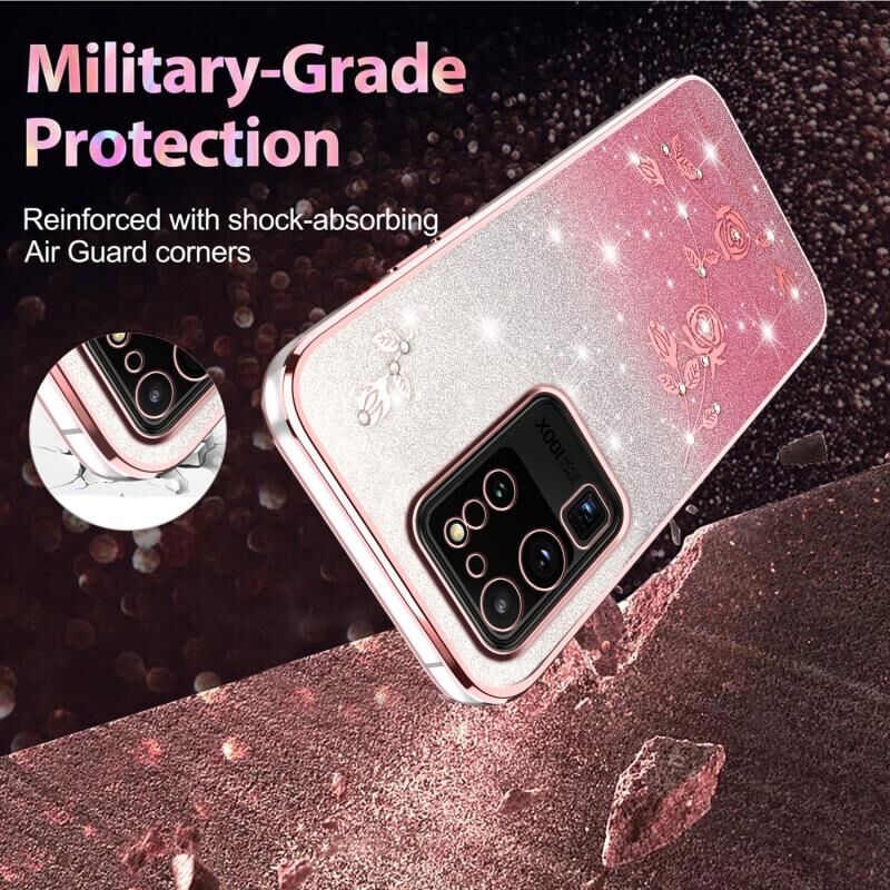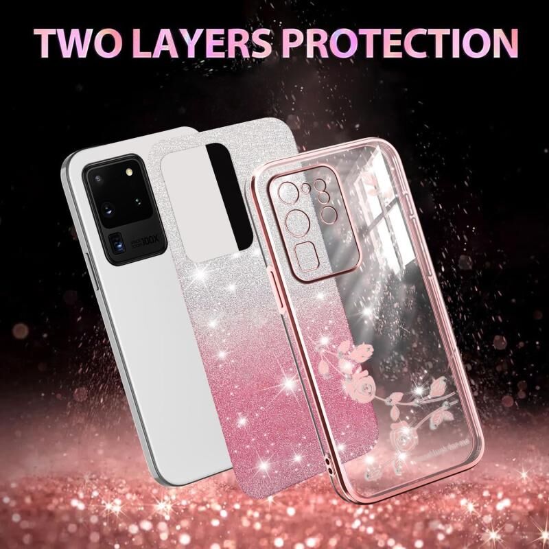 Θήκη τηλεφώνου για Samsung Galaxy S20 Ultra με διαβαθμισμένη λάμψη λουλουδιών, πλήρως προστατευτική (Μωβ)