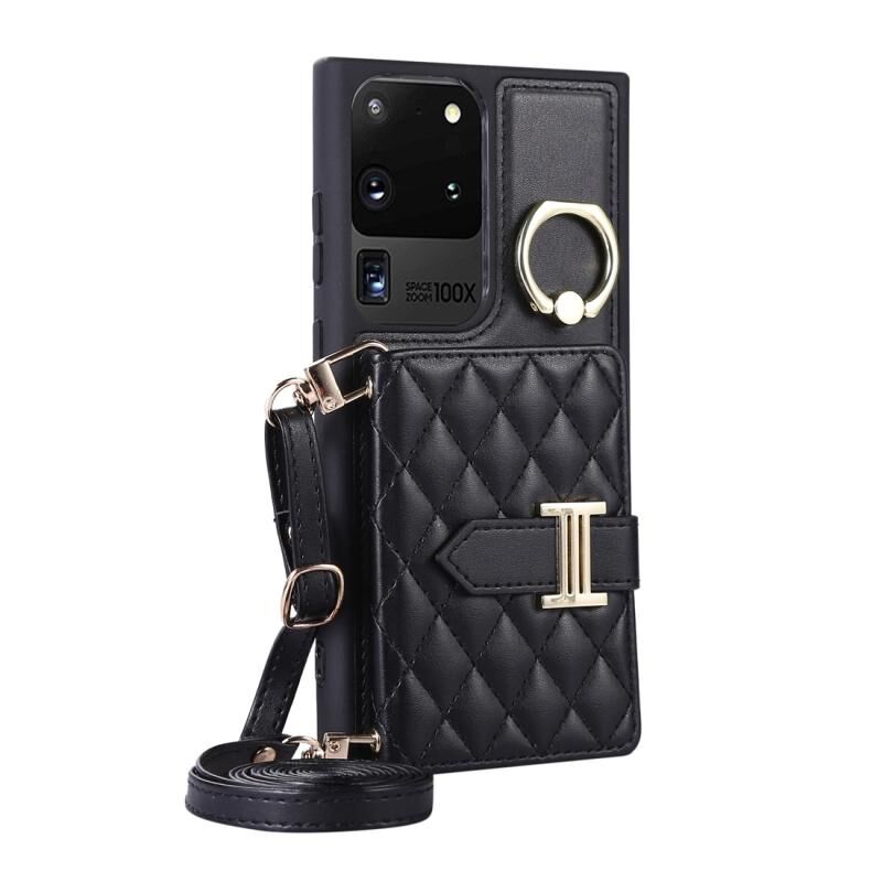 Για Samsung Galaxy S20 Ultra Οριζόντια κάρτα τσάντα δαχτυλίδι τσάντα θήκη τηλεφώνου με διπλό κορδόνι (μαύρο)