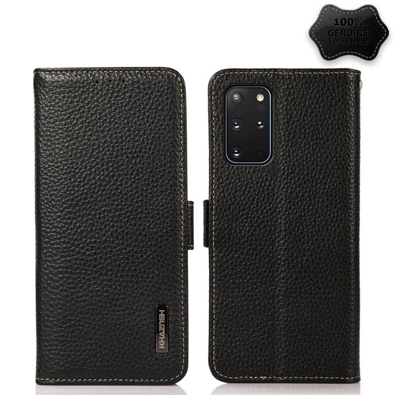Θήκη τηλεφώνου Samsung Galaxy S20 Ultra KHAZNEH με μαγνητικό κλείσιμο, από γνήσιο δέρμα Litchi και προστασία RFID (Μαύρο)