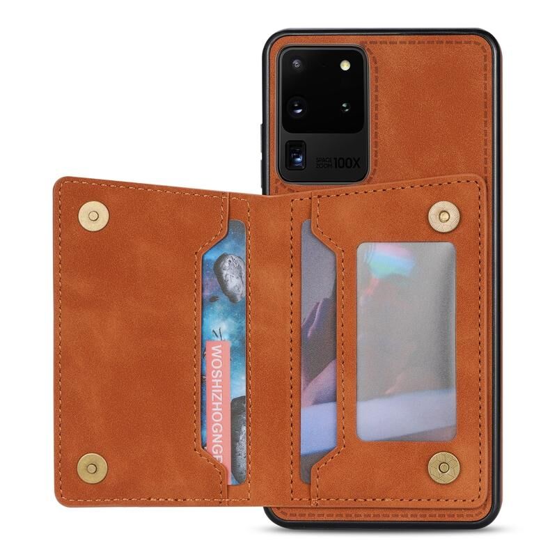 Θήκη τηλεφώνου με βάση για κάρτες για Samsung Galaxy S20 Ultra (Καφέ)