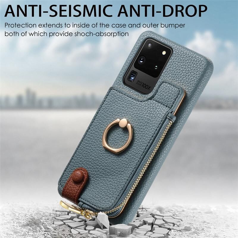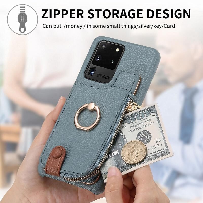 Για Samsung Galaxy S20 Ultra Litchi δέρμα λάδι Edge δαχτυλίδι φερμουάρ πορτοφόλι πίσω υπόθεση τηλεφώνου (Μπλε)