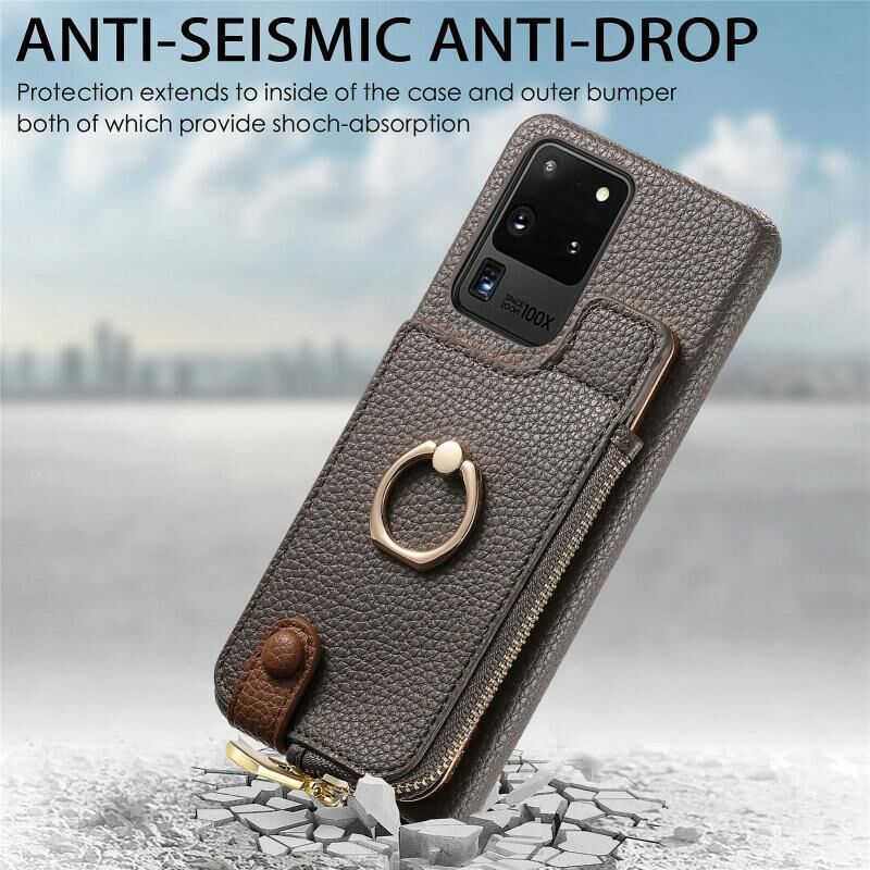 Για Samsung Galaxy S20 Ultra Litchi δέρμα λάδι Edge δαχτυλίδι φερμουάρ πορτοφόλι πίσω υπόθεση τηλεφώνου (γκρι)