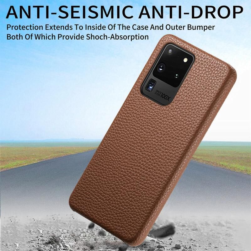 Για Samsung Galaxy S20 Ultra Litchi Oil Edge δέρμα Edge πίσω υπόθεση τηλεφώνου (Καφέ)