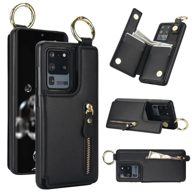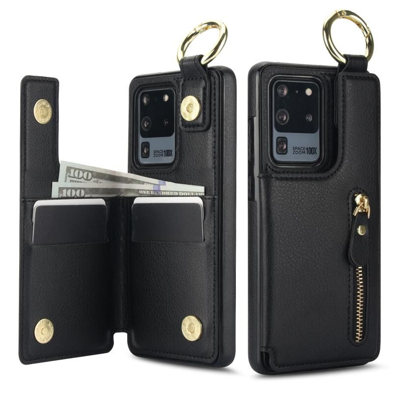 Για Samsung Galaxy S20 Ultra Litchi υφή φερμουάρ διπλή πόρπη κάρτα τσάντα υπόθεση τηλεφώνου (μαύρο)