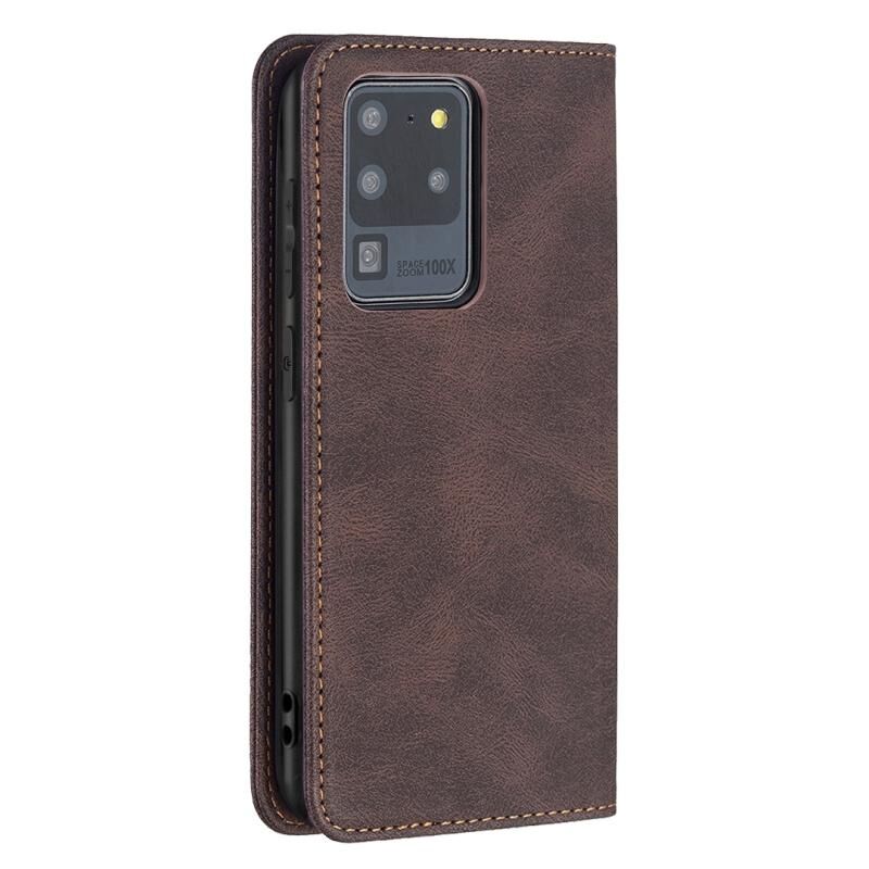 Για Samsung Galaxy S20 Ultra Μαγνητικό RFID Blocking Anti-Theft Δερμάτινη θήκη με θήκη & υποδοχές για κάρτες & πορτοφόλι (καφέ)