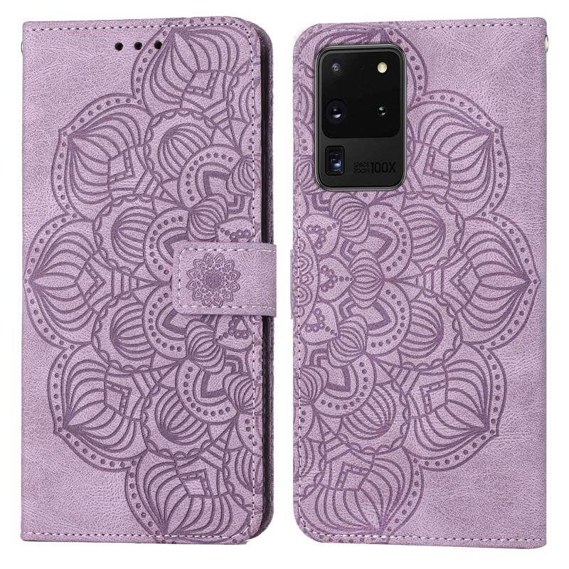 Για Samsung Galaxy S20 Ultra Mandala ανάγλυφο Flip υπόθεση τηλεφώνου δέρμα (Μωβ)