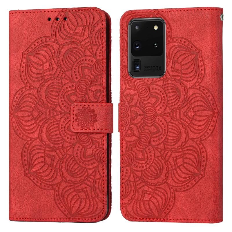 Για το Samsung Galaxy S20 Ultra Mandala ανάγλυφο Flip δερμάτινη θήκη τηλεφώνου (κόκκινο)