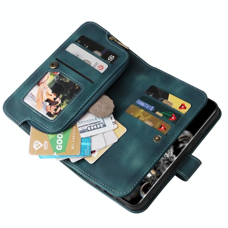 Για Samsung Galaxy S20 Ultra πολυλειτουργική κάρτα Slot φερμουάρ πορτοφόλι δερμάτινη θήκη τηλεφώνου (μπλε)