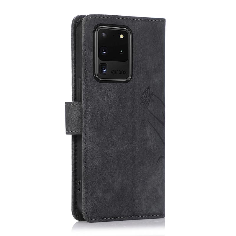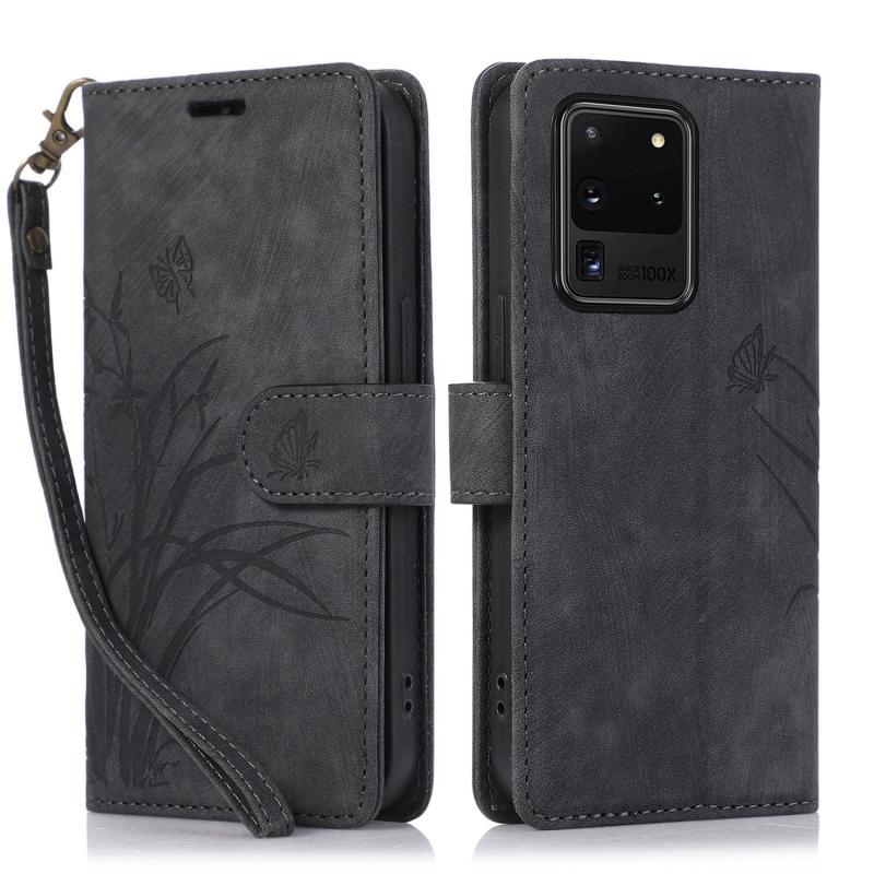 For Samsung Galaxy S20 Ultra Orchid Butterfly Embossed Leather Phone Case(Black)
