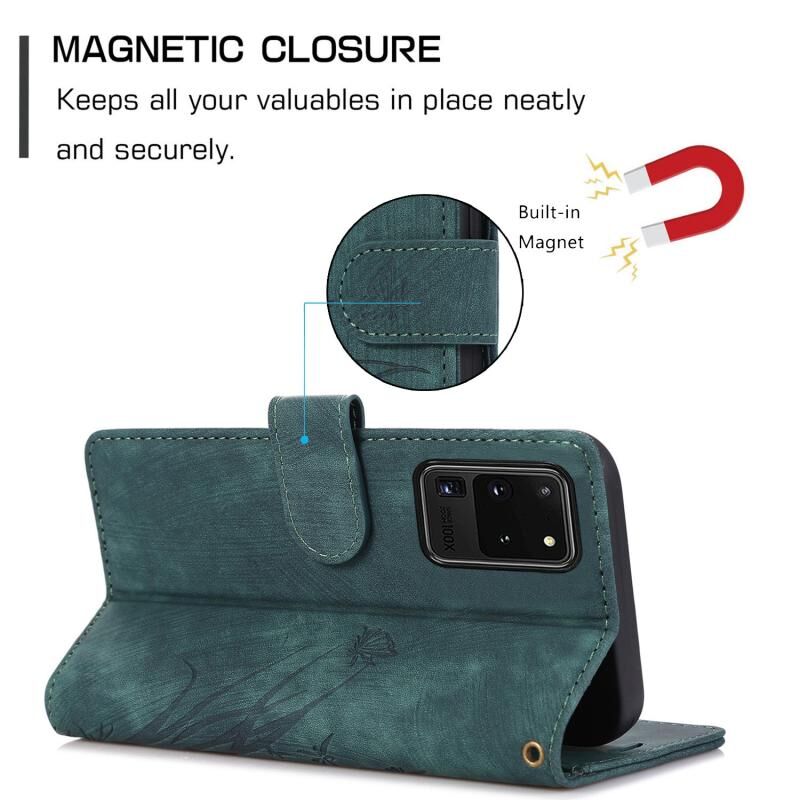 Θήκη τηλεφώνου δερμάτινη ανάγλυφη με σχέδιο ορχιδέας και πεταλούδας για Samsung Galaxy S20 Ultra (Πράσινη)