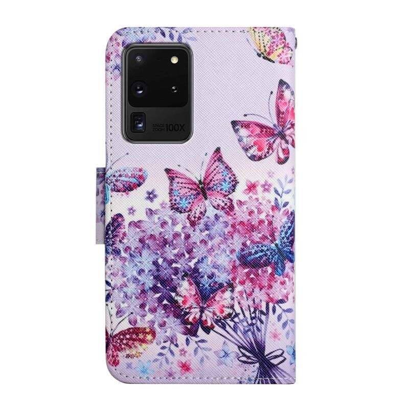 Θήκη δέρματος οριζόντιας αναδίπλωσης με σχέδιο ζωγραφικής για Samsung Galaxy S20 Ultra με βάση & υποδοχή κάρτας & πορτοφόλι (Κόκκινο Λουλούδι)
