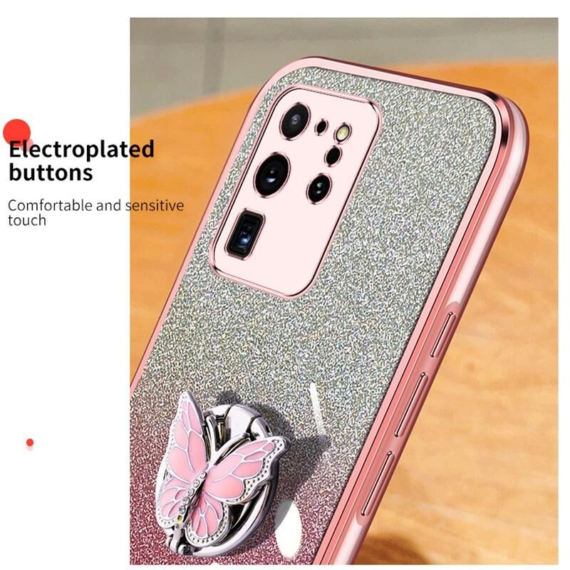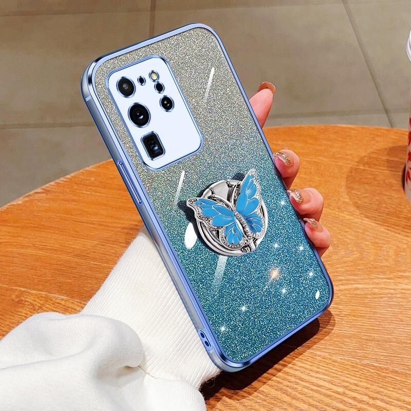 Για Samsung Galaxy S20 Ultra Plated βαθμιδωτή Glitter πεταλούδα κάτοχος TPU υπόθεση τηλεφώνου (Sierra Blue)