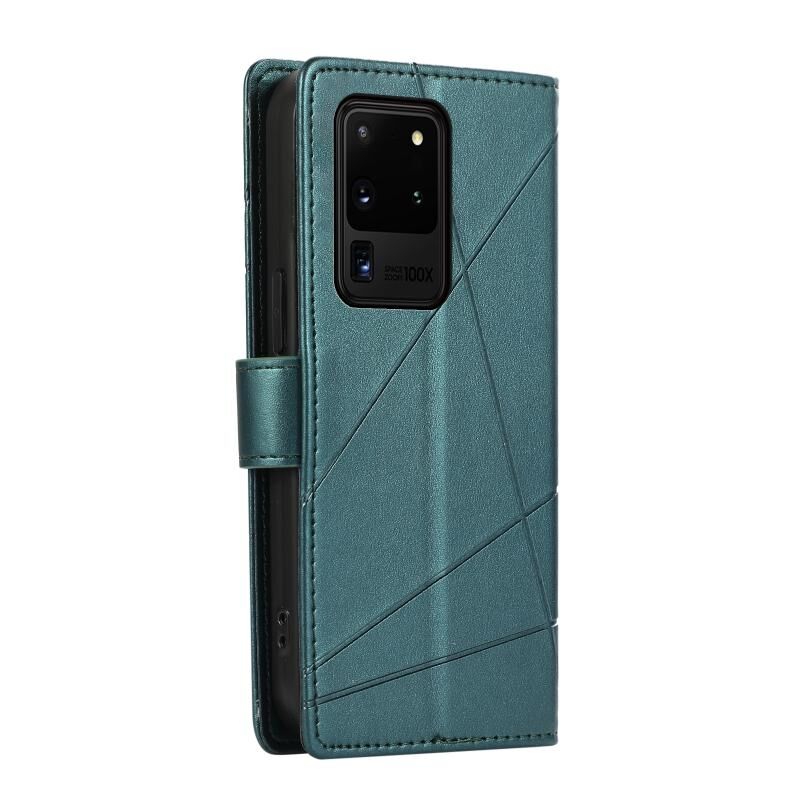 Θήκη τηλεφώνου για Samsung Galaxy S20 Ultra από γνήσιο δέρμα PU με ανάγλυφη υφή και λεπτομέρειες γραμμής (Μπλε)