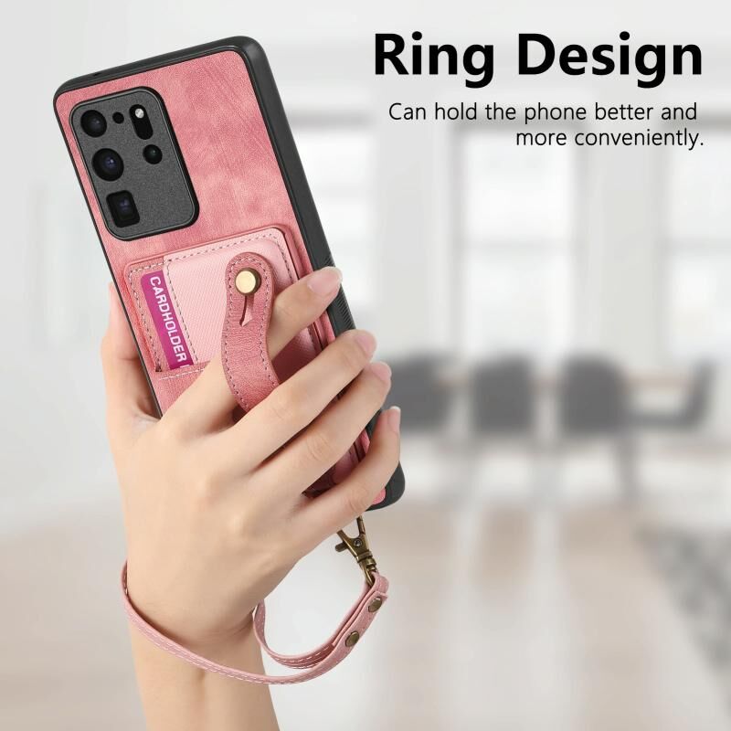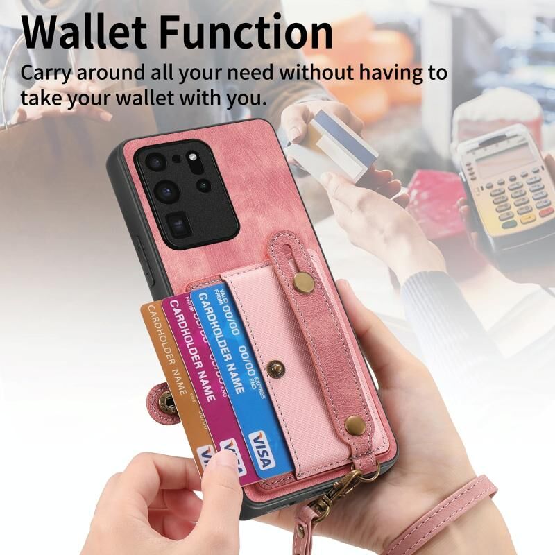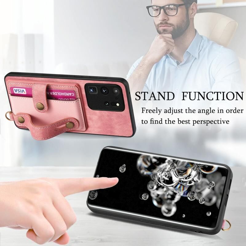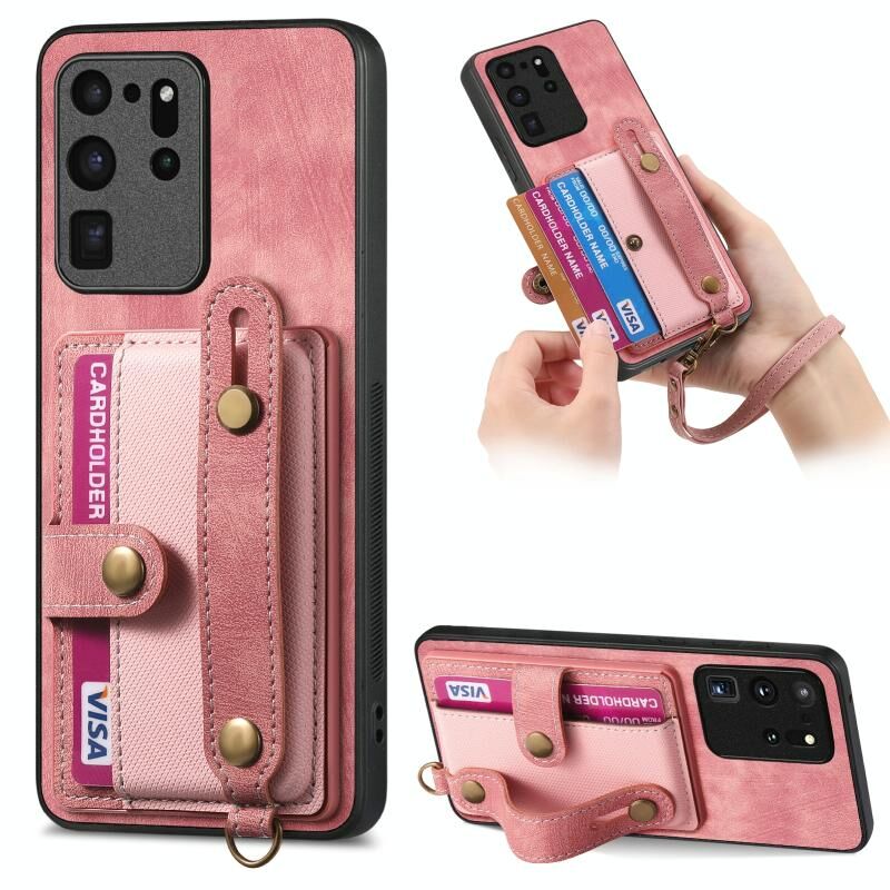Για Samsung Galaxy S20 Ultra Retro Σταυρός Wristband πορτοφόλι δέρμα πίσω υπόθεση τηλεφώνου (ροζ)