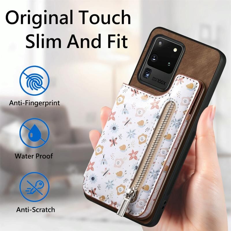 2. Λειτουργία πορτοφολιού: Η δερμάτινη θήκη είναι εξοπλισμένη με υποδοχές για κάρτες και ένα μικρό ποσό μετρητών.